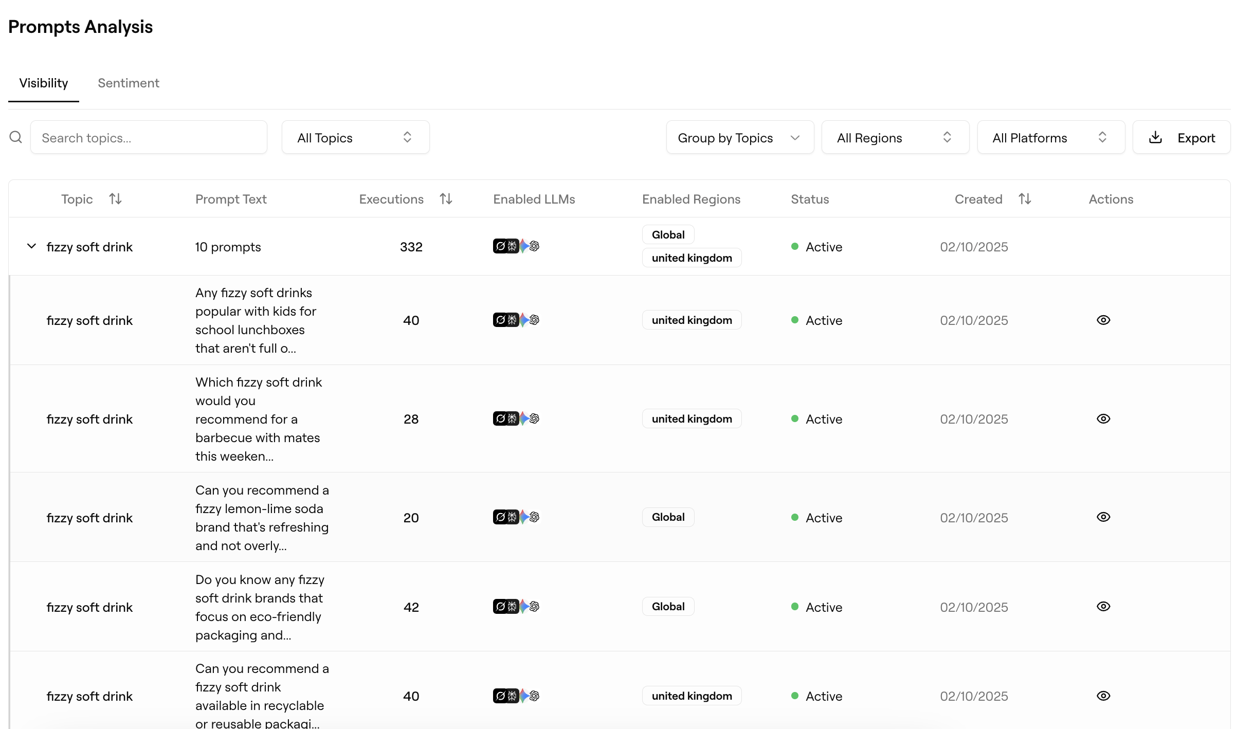 Deliver prompt-level data, visibility scores, and sentiment analysis — all in shareable formats.
